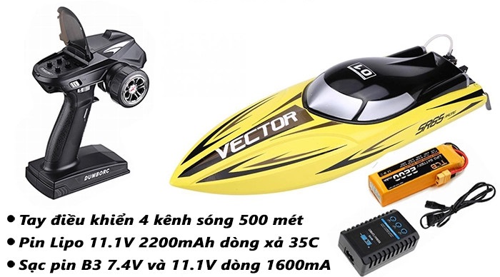 Cano điều khiển từ xa RC Vector SR65 V792-5 (792-5) tàu thuyền mô hình cỡ lớn tốc độ cao 60km/h Tàu Volantex Vector SR65, có chống lật, sóng xa 500m, bản đầy đủ RTR.